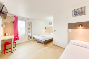 L'hôtel propose 60 chambres équipées d'une télévision écran plat avec Canal+, Canal Satellite, TNT et BeInSports pour les amateurs de sport. Chaque chambre dispose d'une salle de bain privative avec douche, d'un bureau et d'une penderie. La connexion Wi-Fi gratuite et illimitée vous permet de rester connecté tout au long de votre séjour. Un parking privé gratuit est mis à disposition, facilitant votre arrivée et départ.